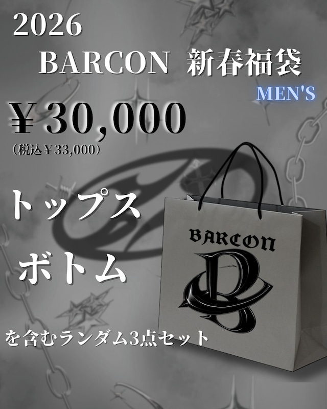 2026 BARCON 新春福袋 予約開始致しました! 福袋内容 ◎3万円(メンズ) トップス ボトム含む3点 ※発送は1月7日~順次発送予定です。
