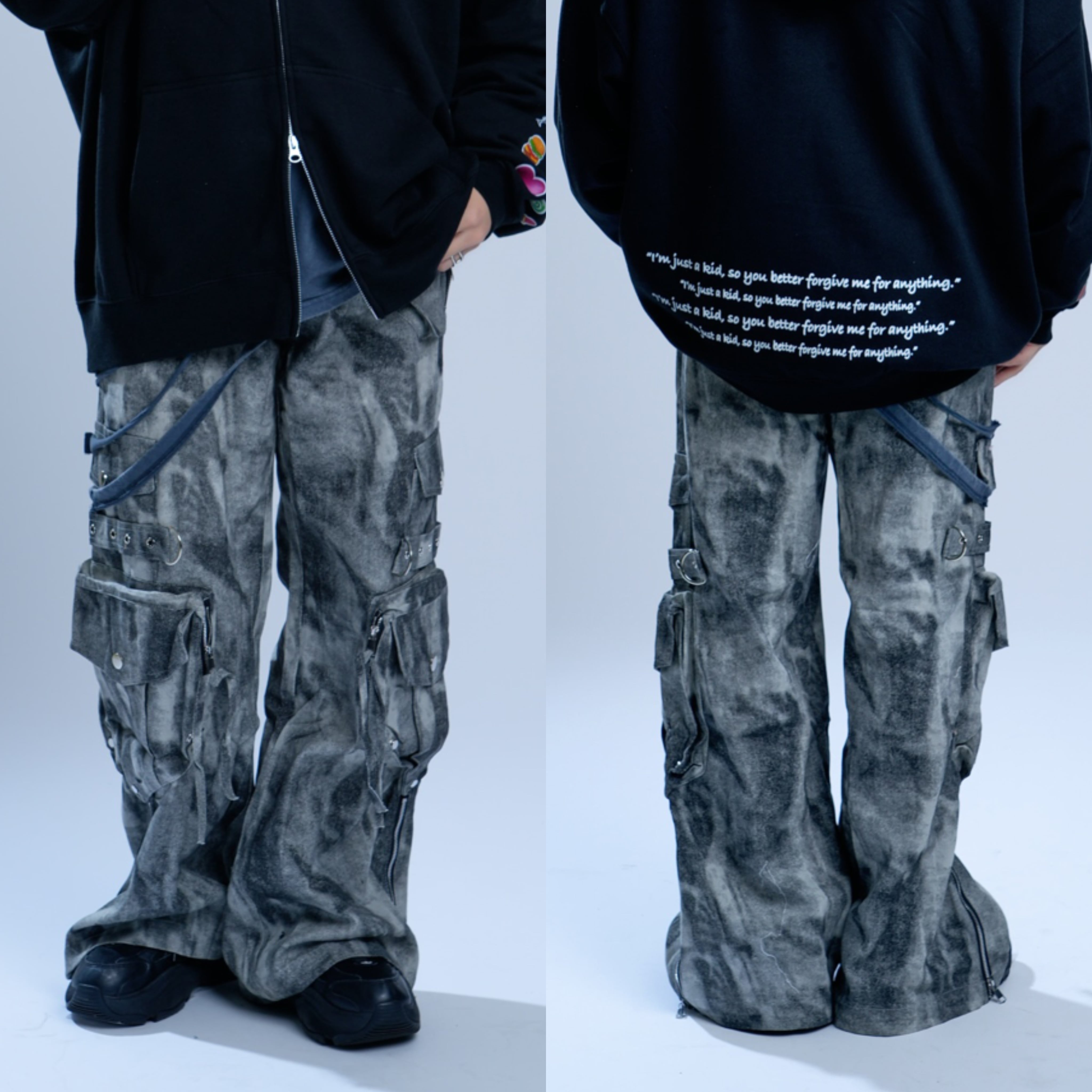 スプレーペイントデニムカーゴパンツ グランジ ストリート Y2K