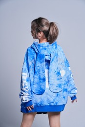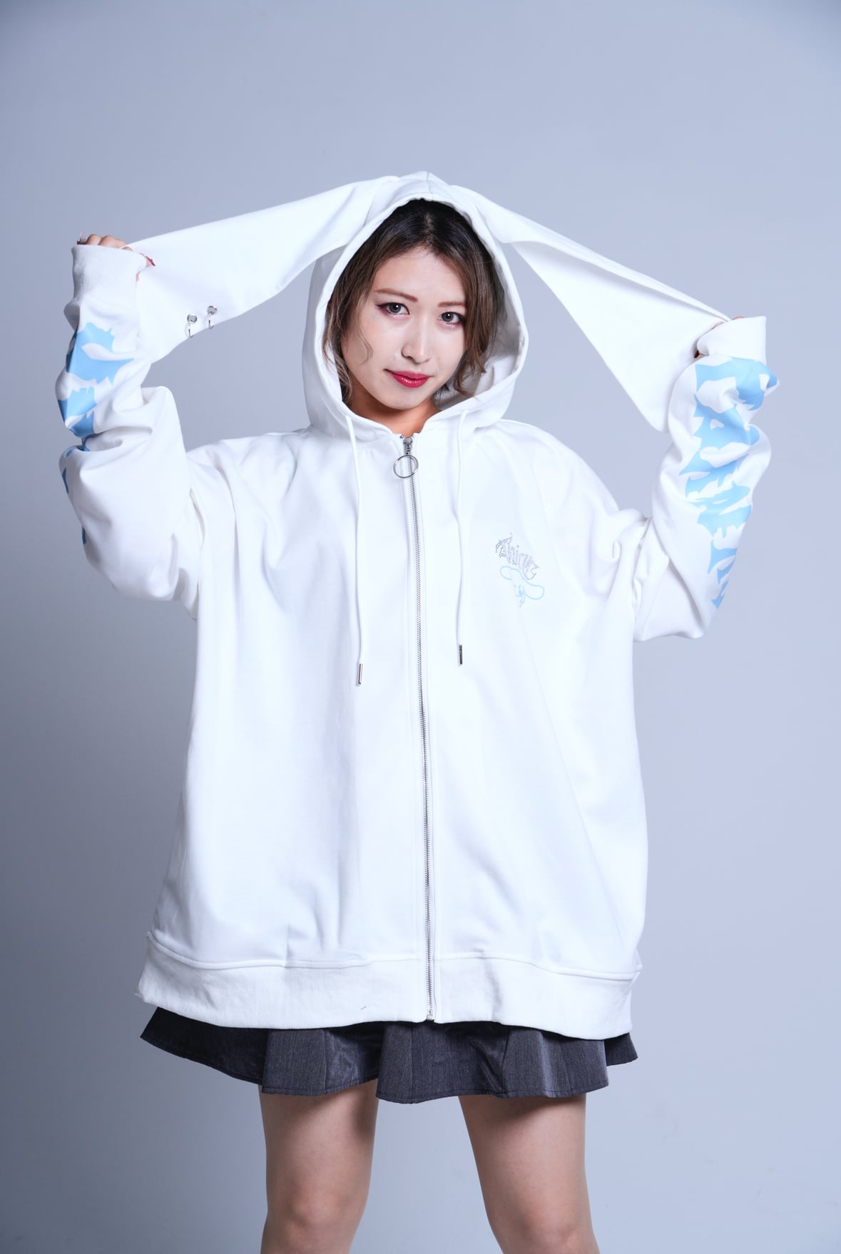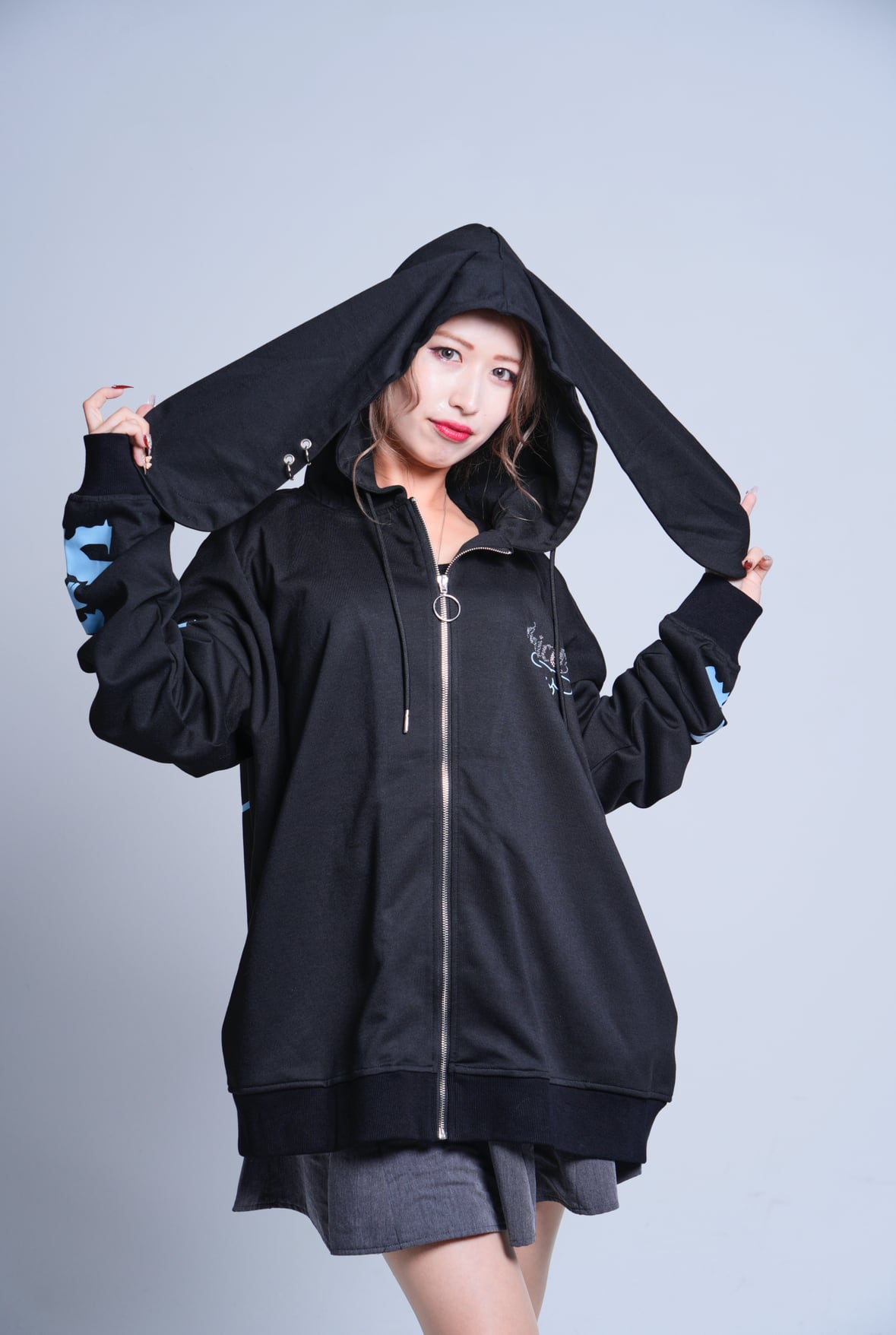 フード部分には長い耳がついており、キャラクター性を高めつつ、遊び心のあるデザインです。