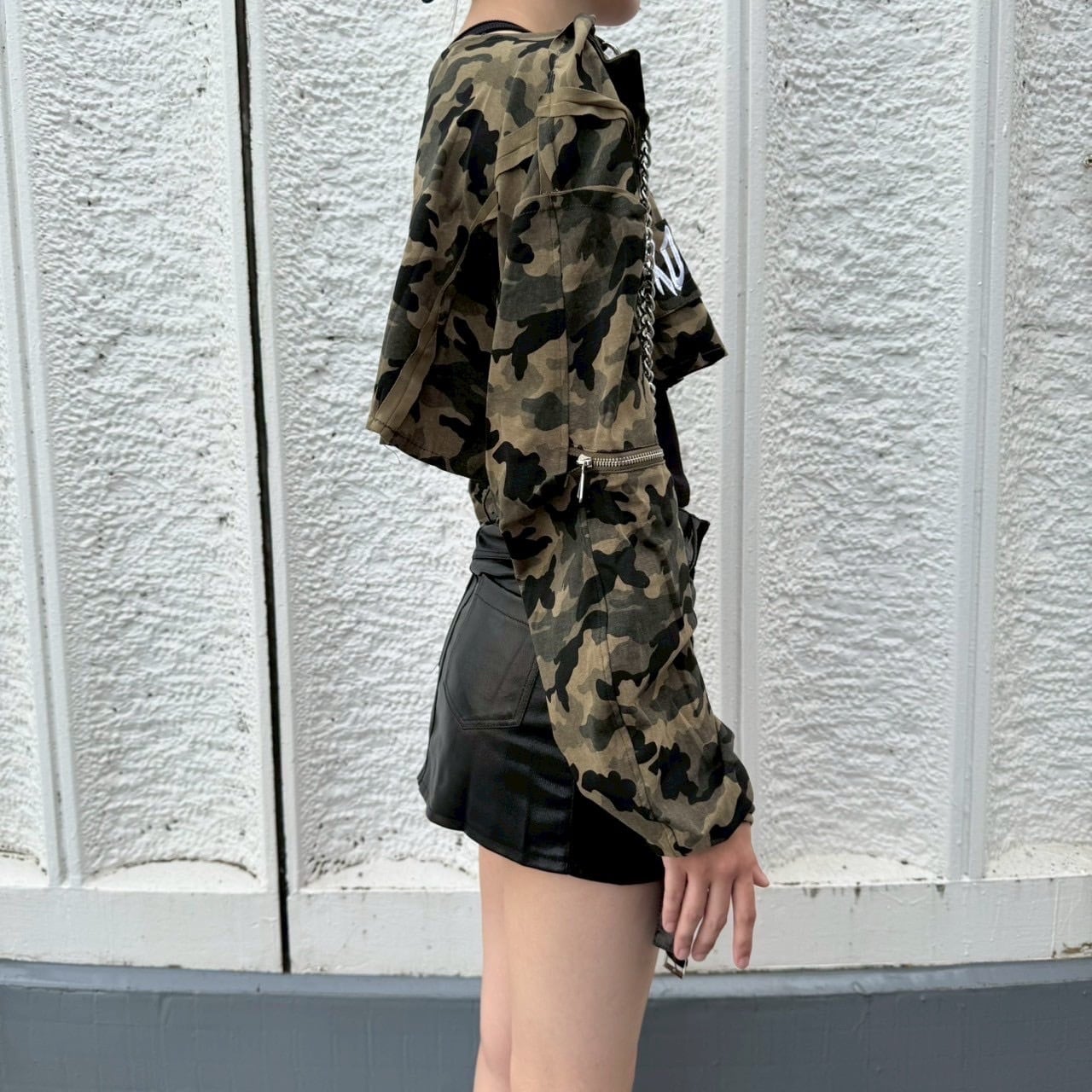 BARCON 迷彩クロップド丈トップス グランジ Y2K