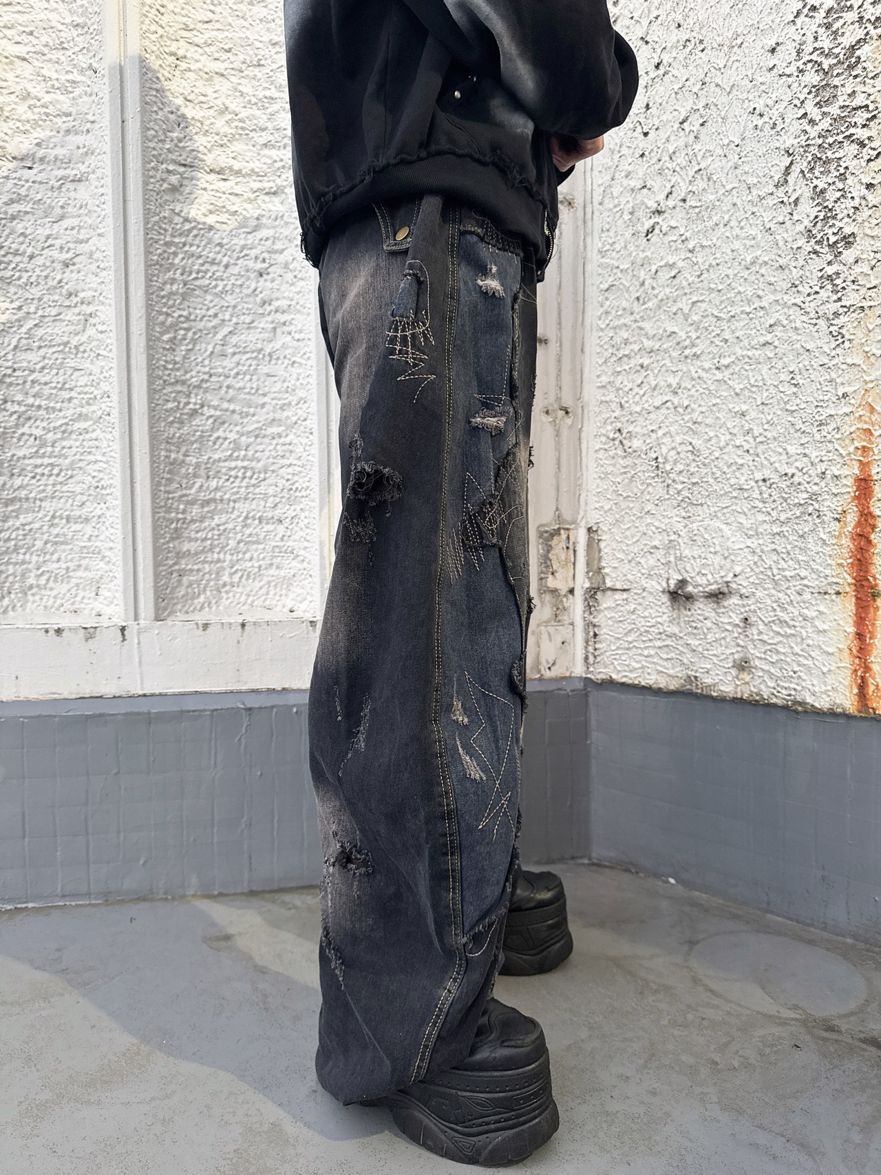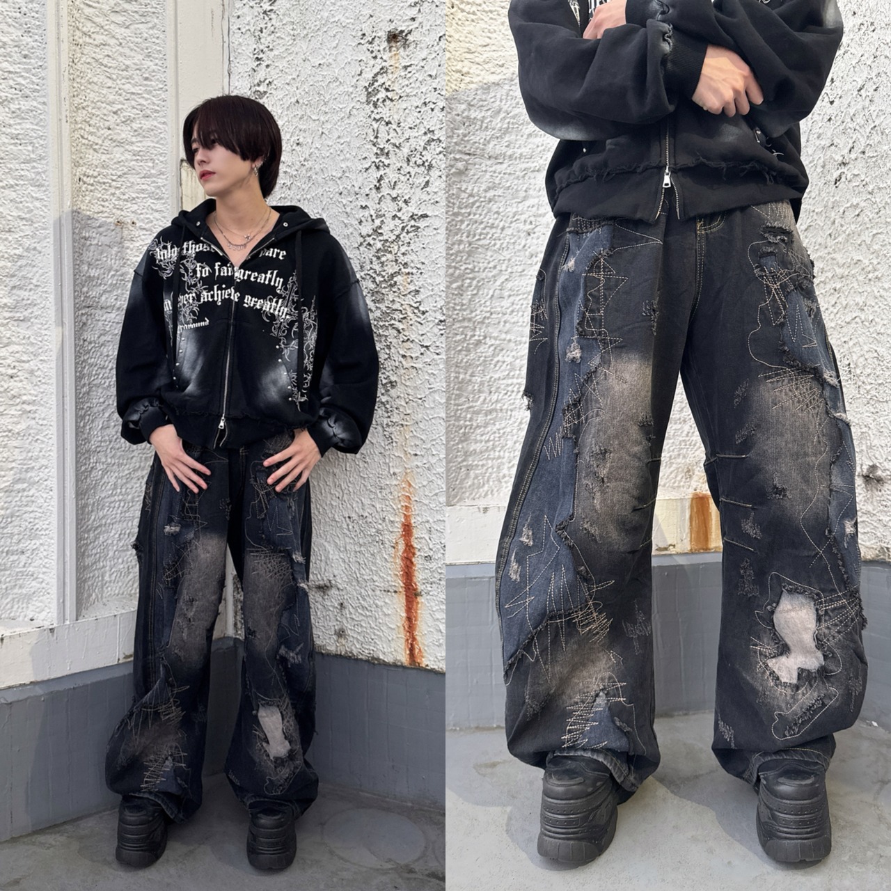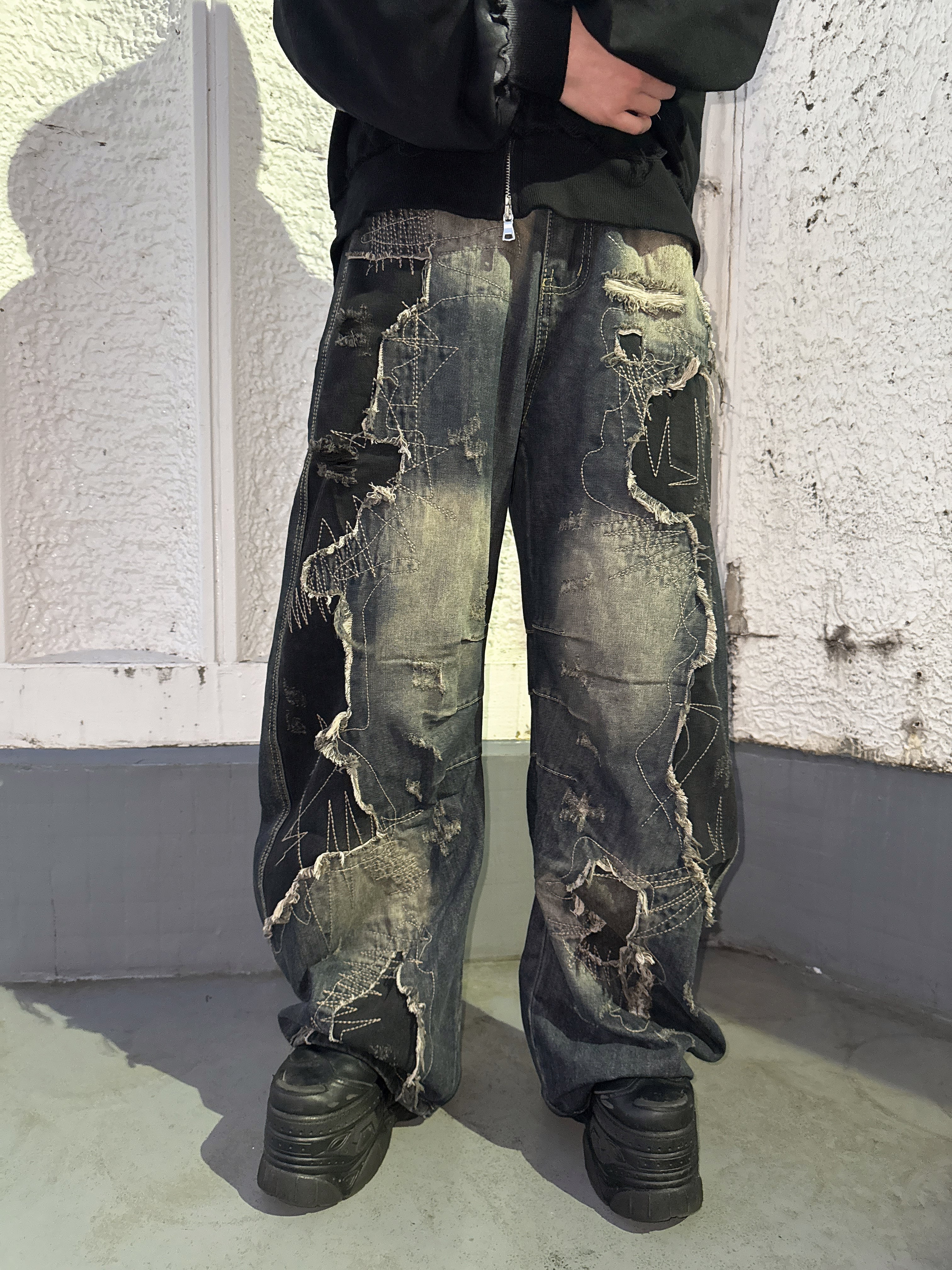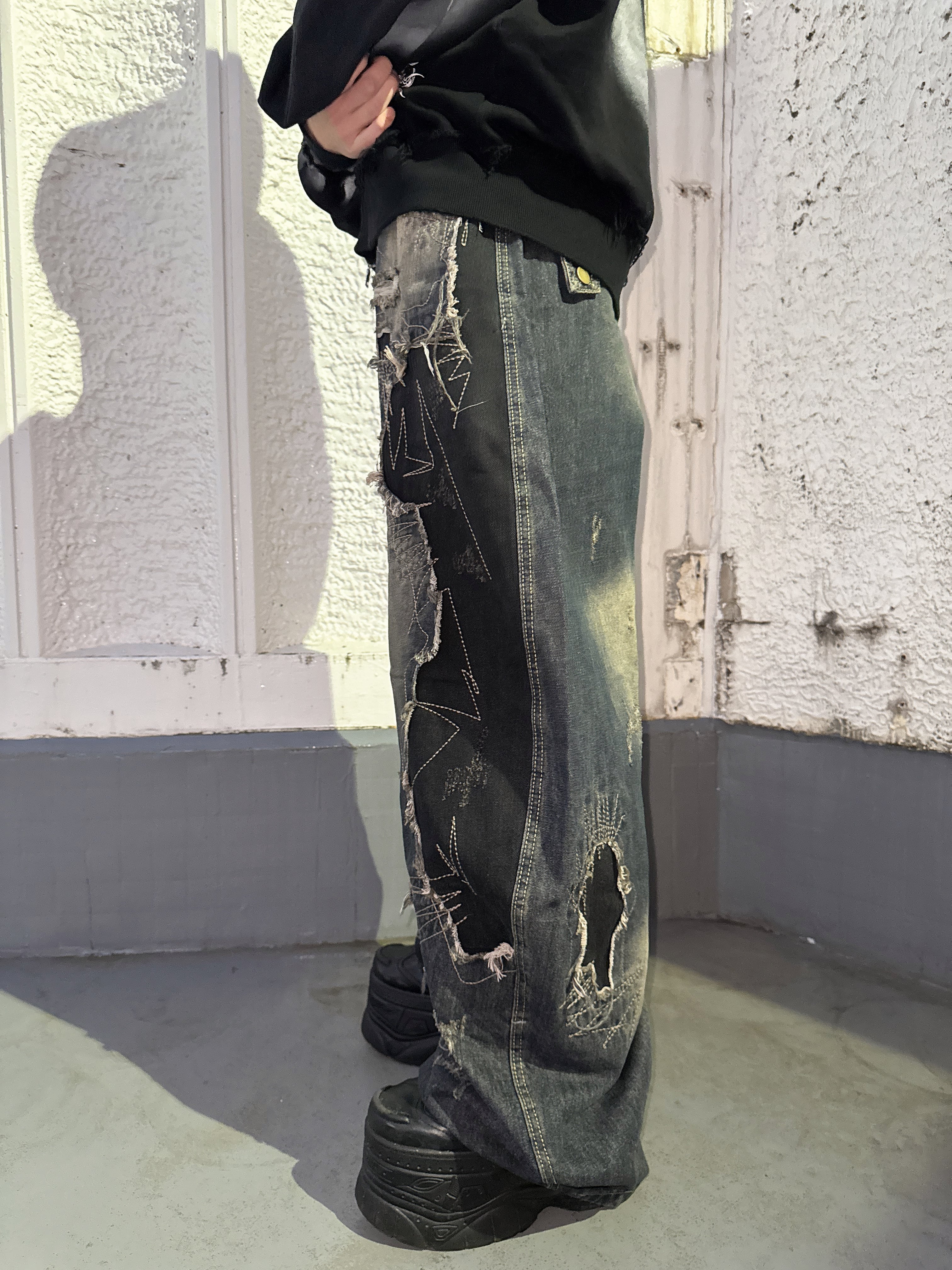 BARCON 新・ツギハギダメージバギーデニムパンツ