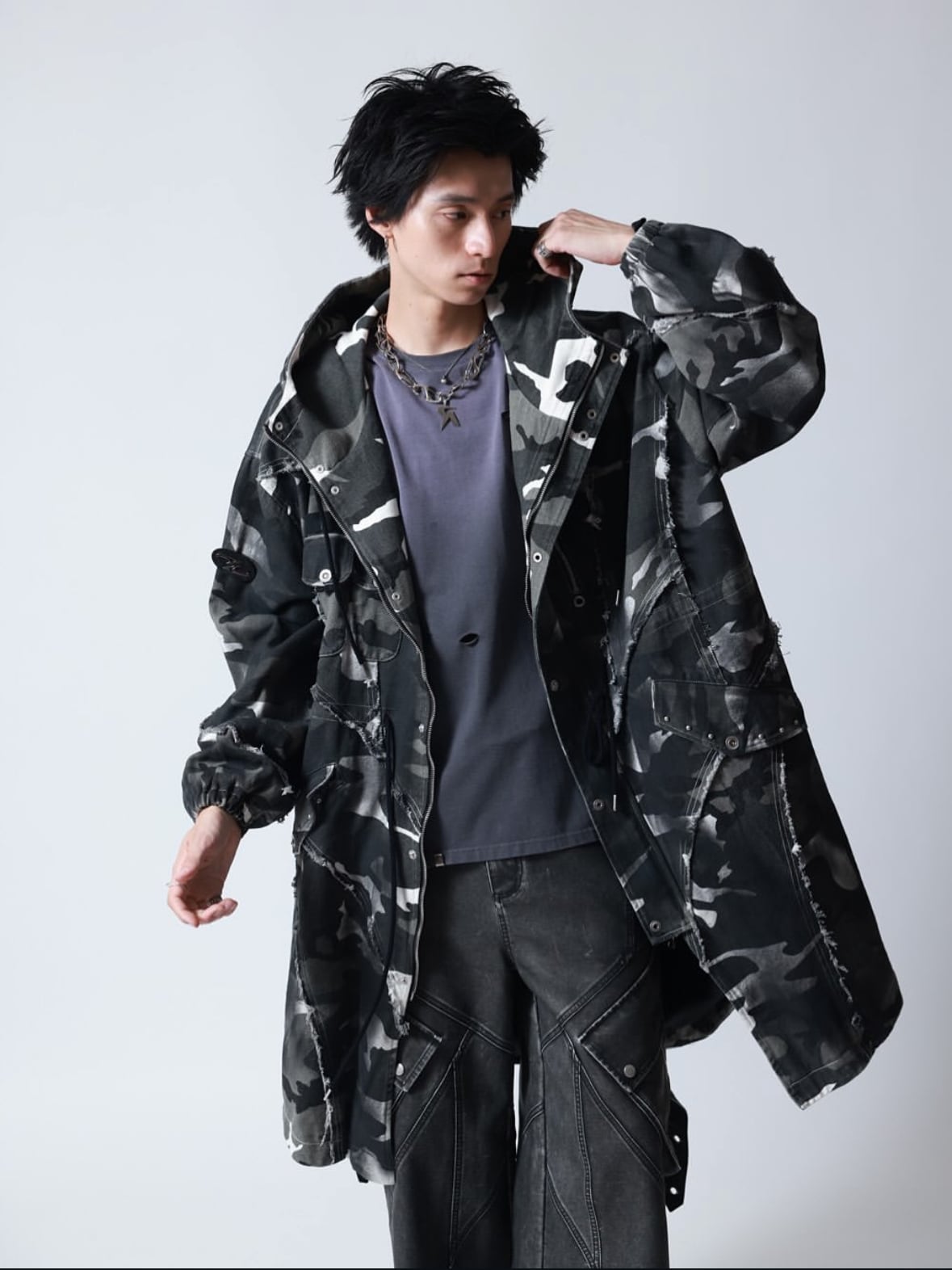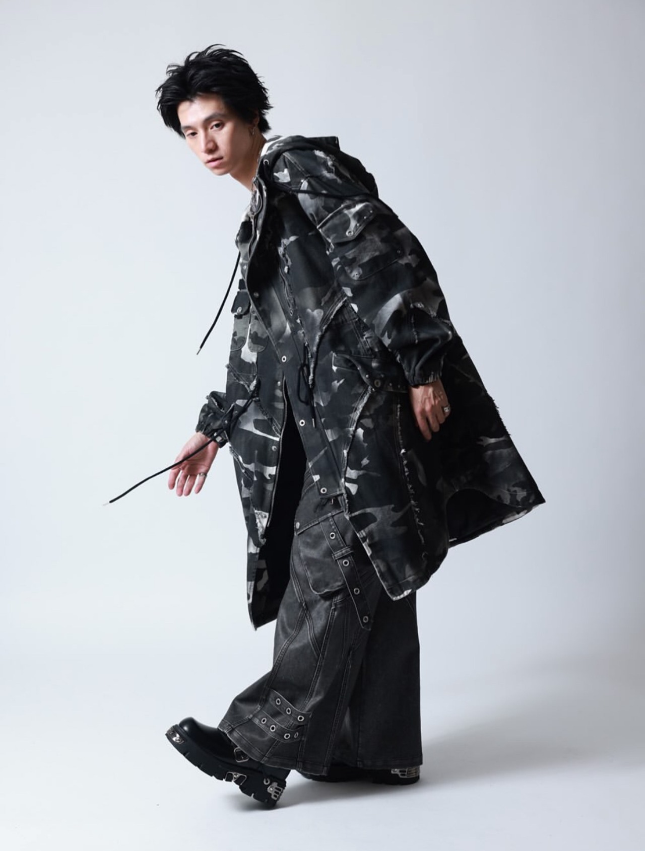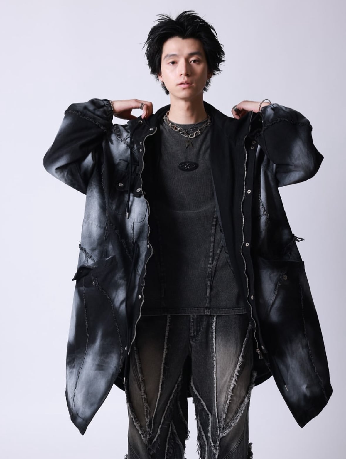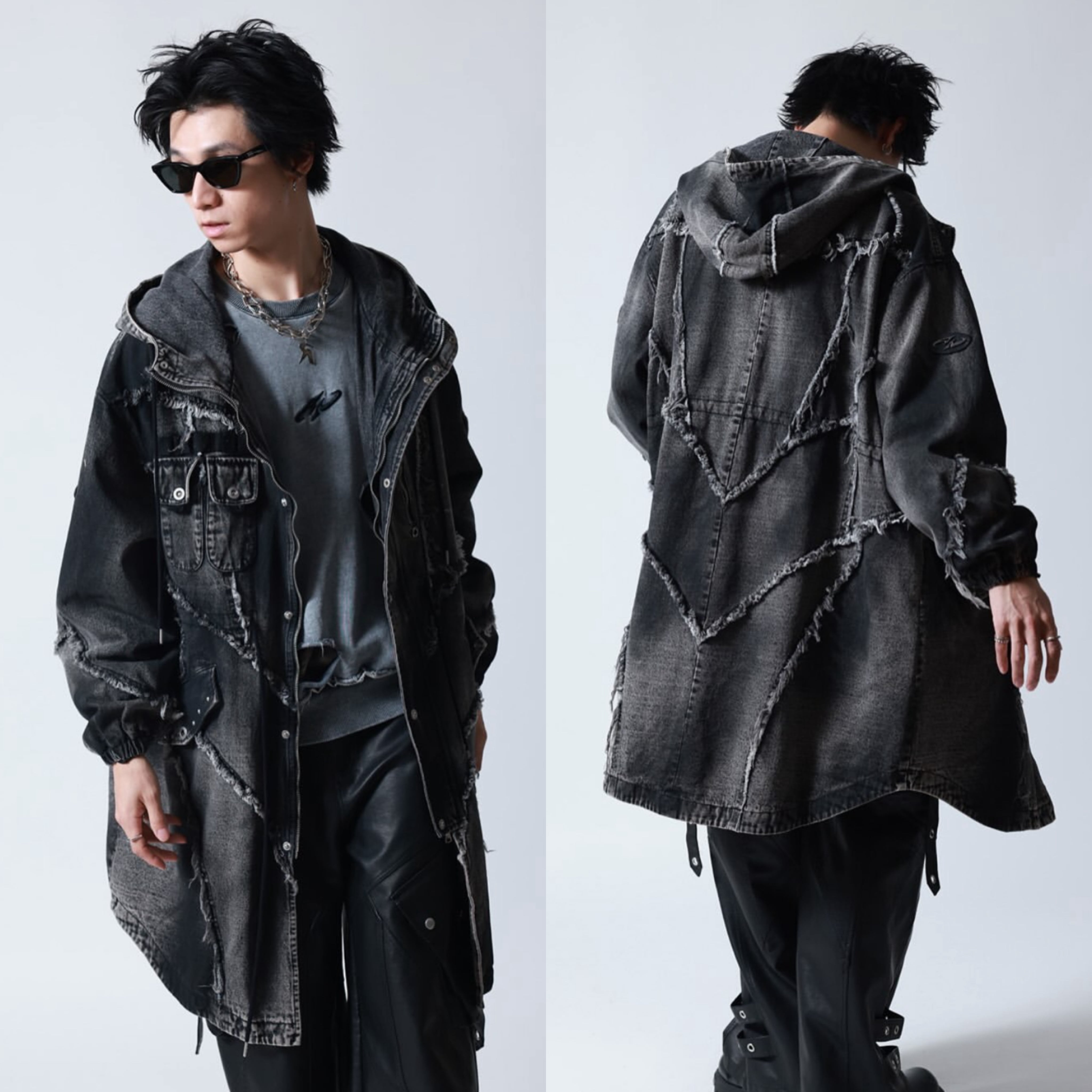 洗いをかけたデニムにフリンジ加工を施し、ヴィンテージ感のある仕上がりに。