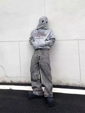 フーディまで繋がれたフルジップ仕様が雰囲気を出しやすく、ダークな印象になりやすい。