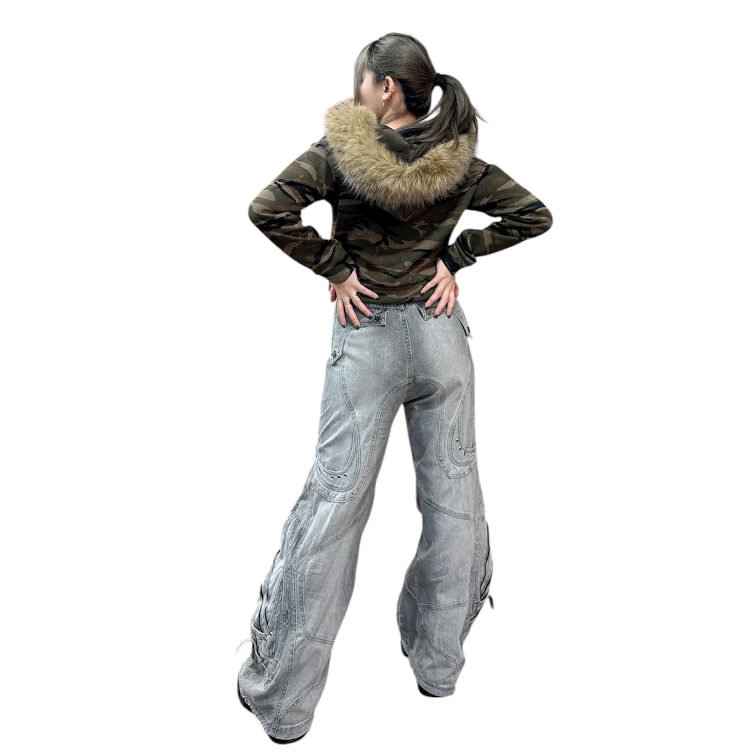 カモフラフードファーパーカー グランジ Y2K ストリート