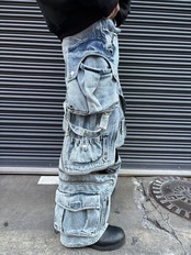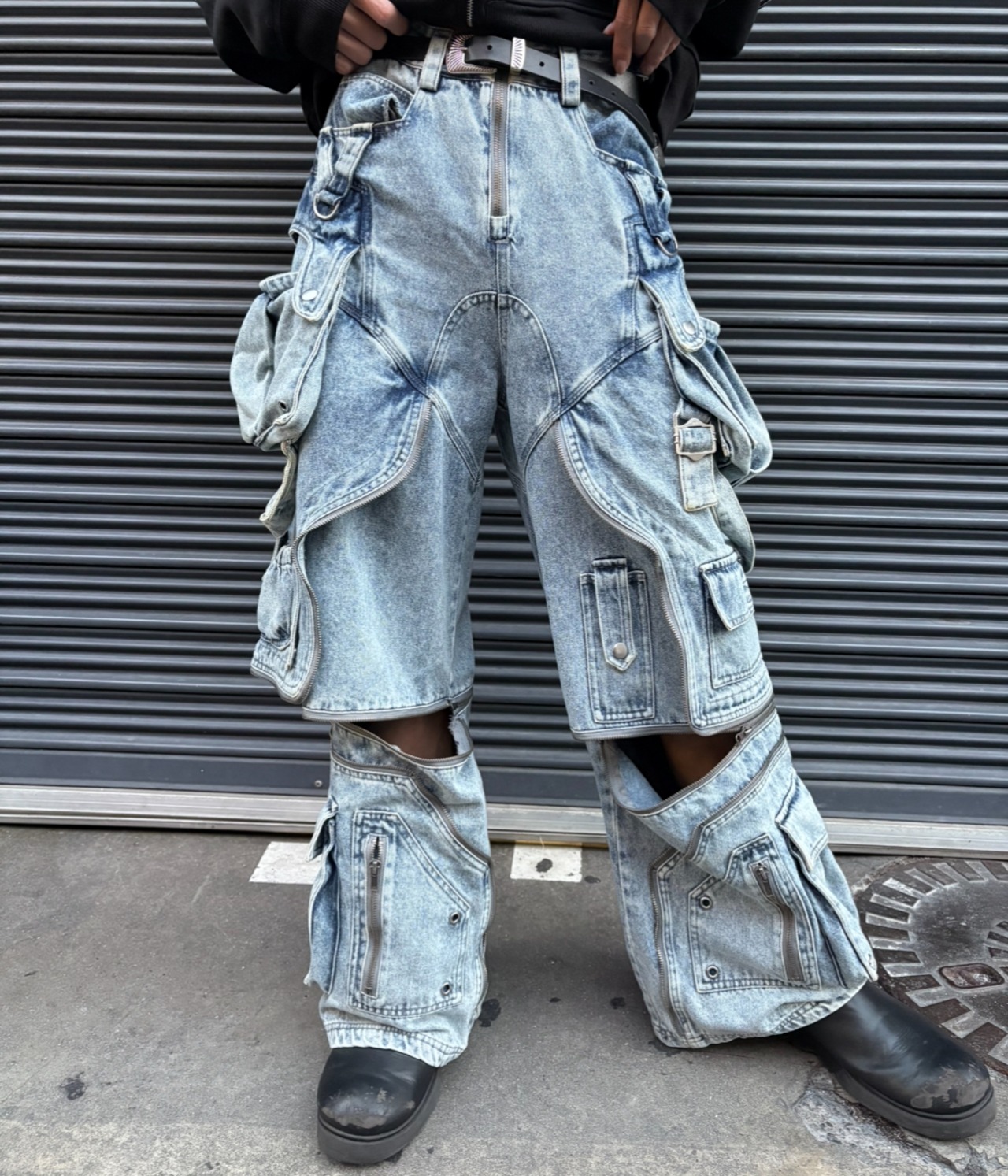 BARCON 2Way ZIPデニムカーゴパンツ グランジ ストリート Y2K サブカル