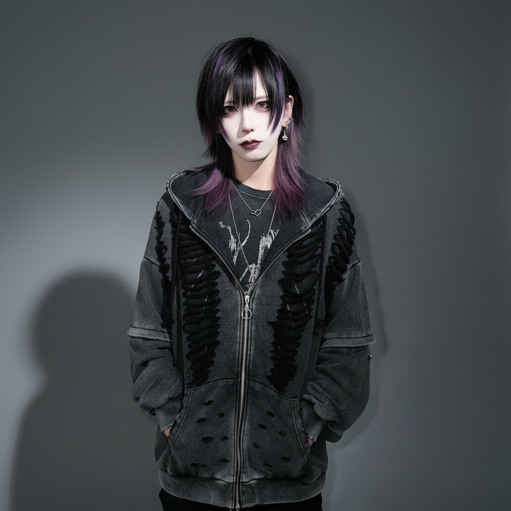退廃的なムードとストリート感を掛け合わせた、存在感抜群のZIPフーディ。