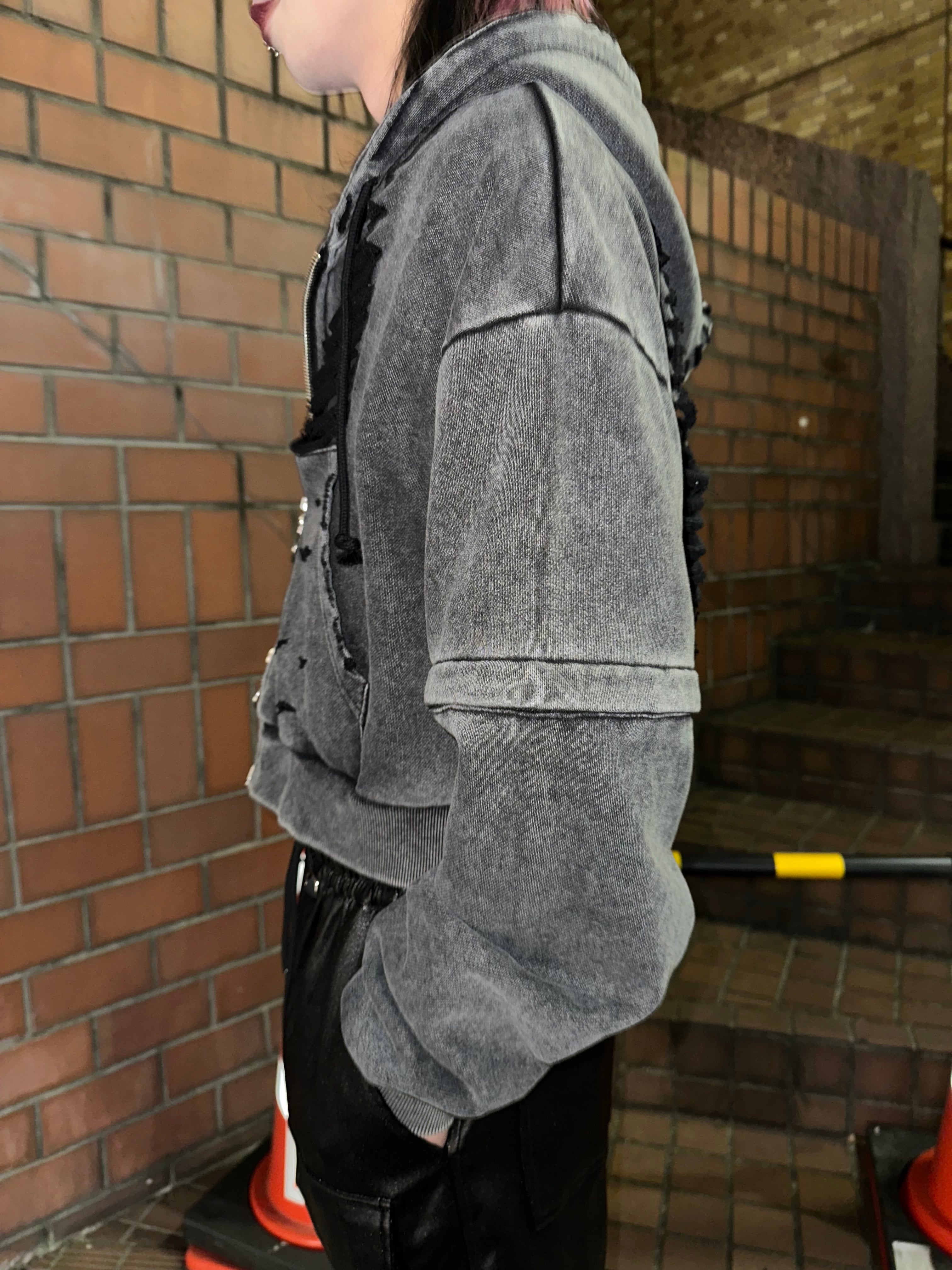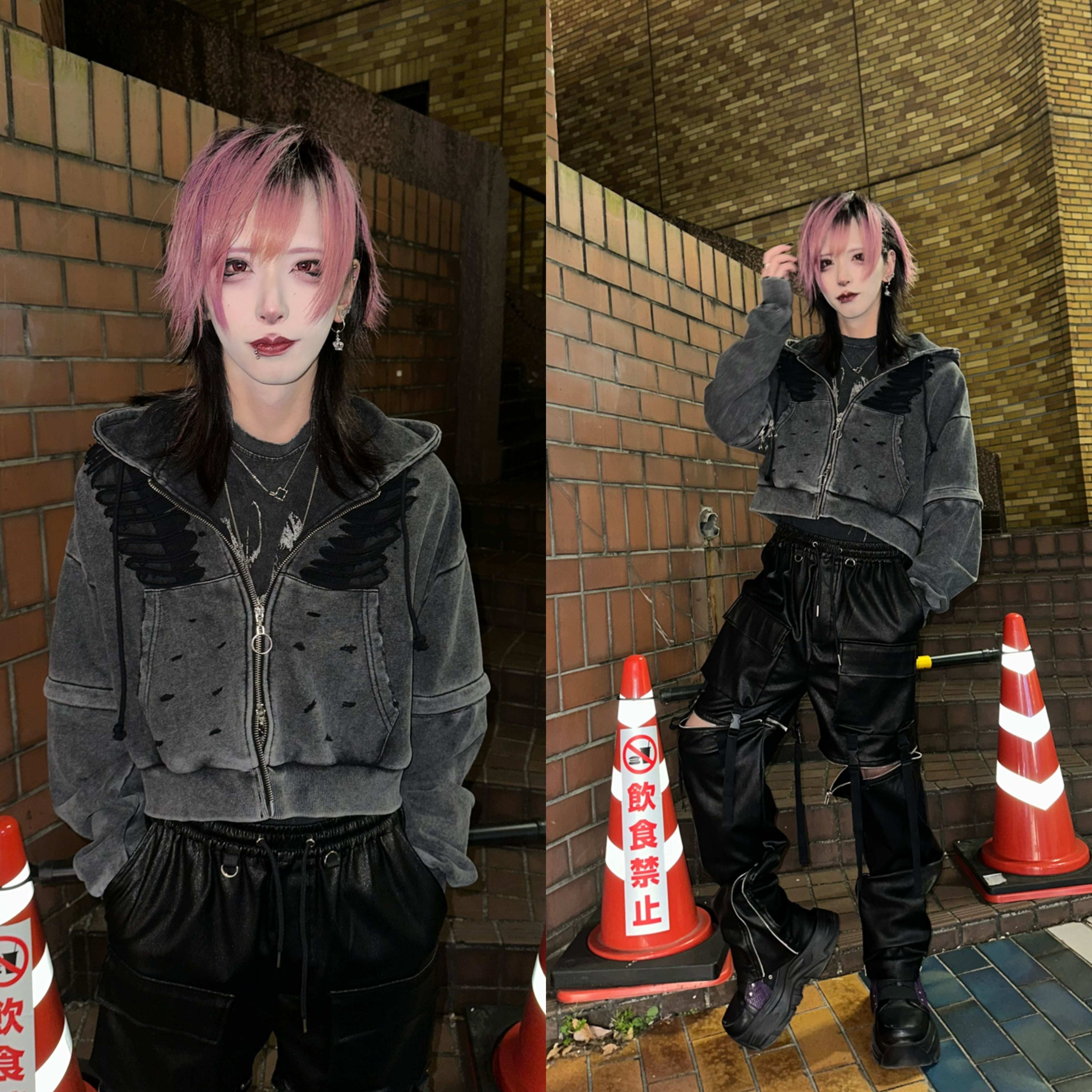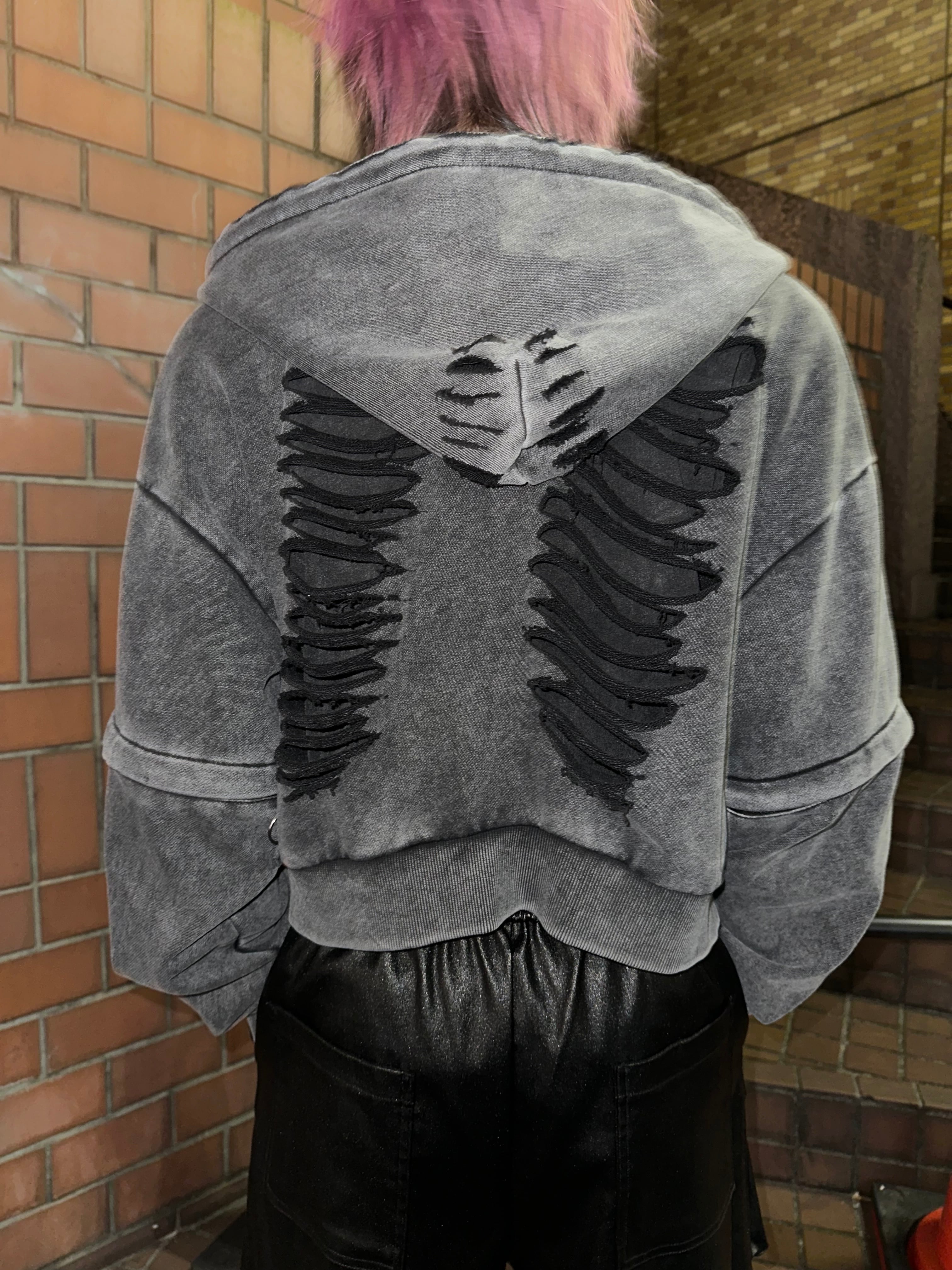 ダブルジップダメージパーカー(ショート)サブカル 地雷 グランジ