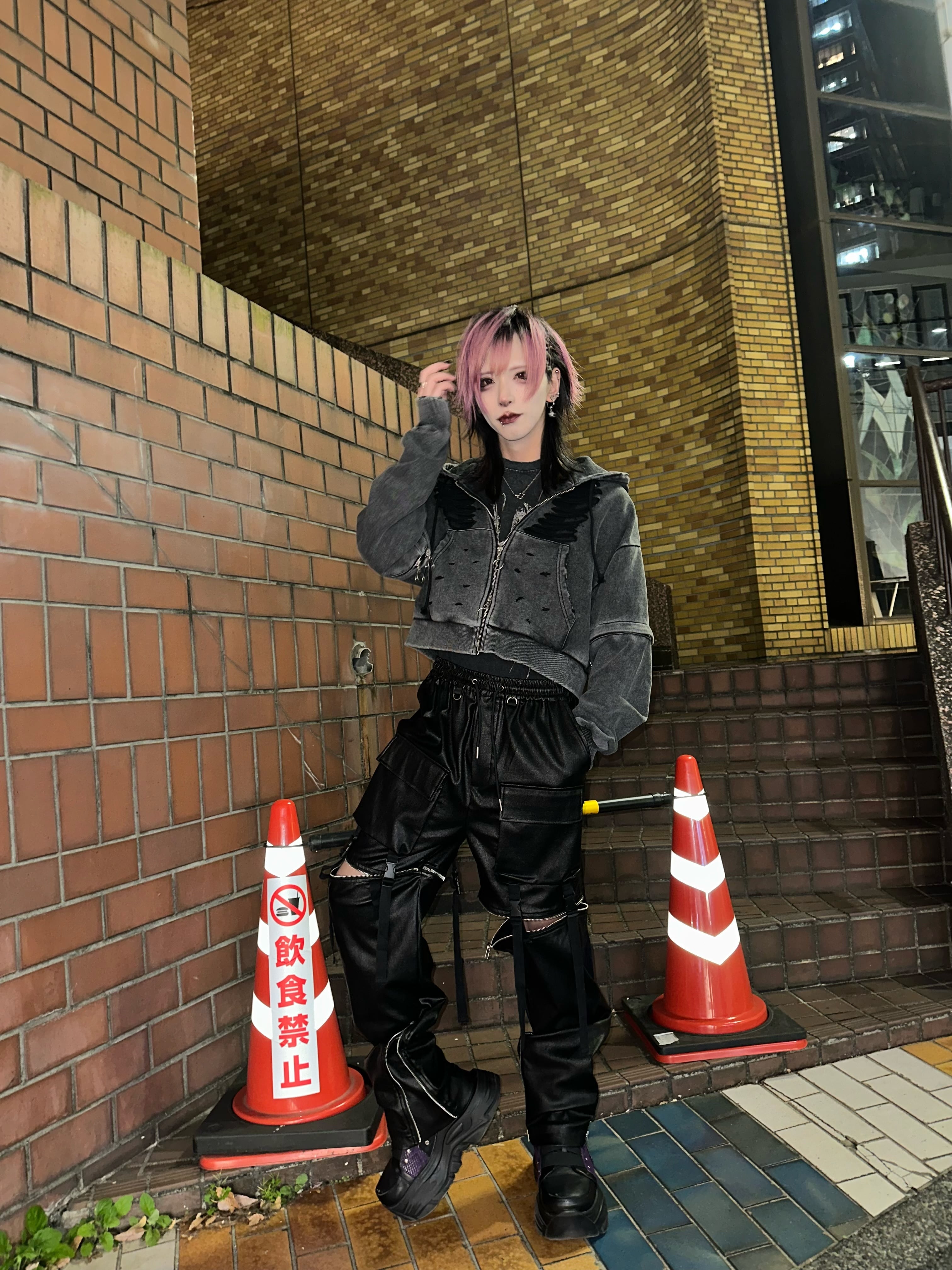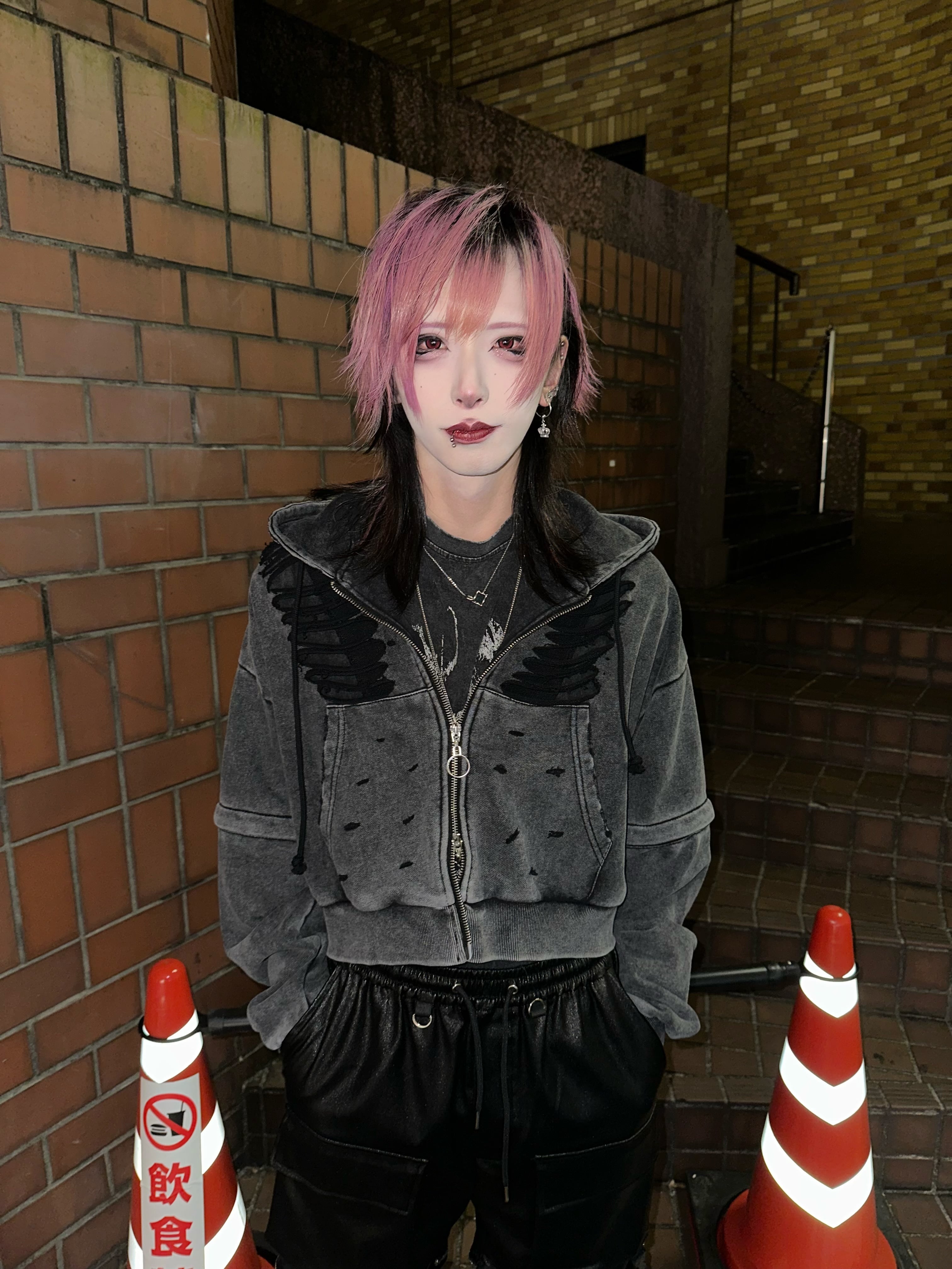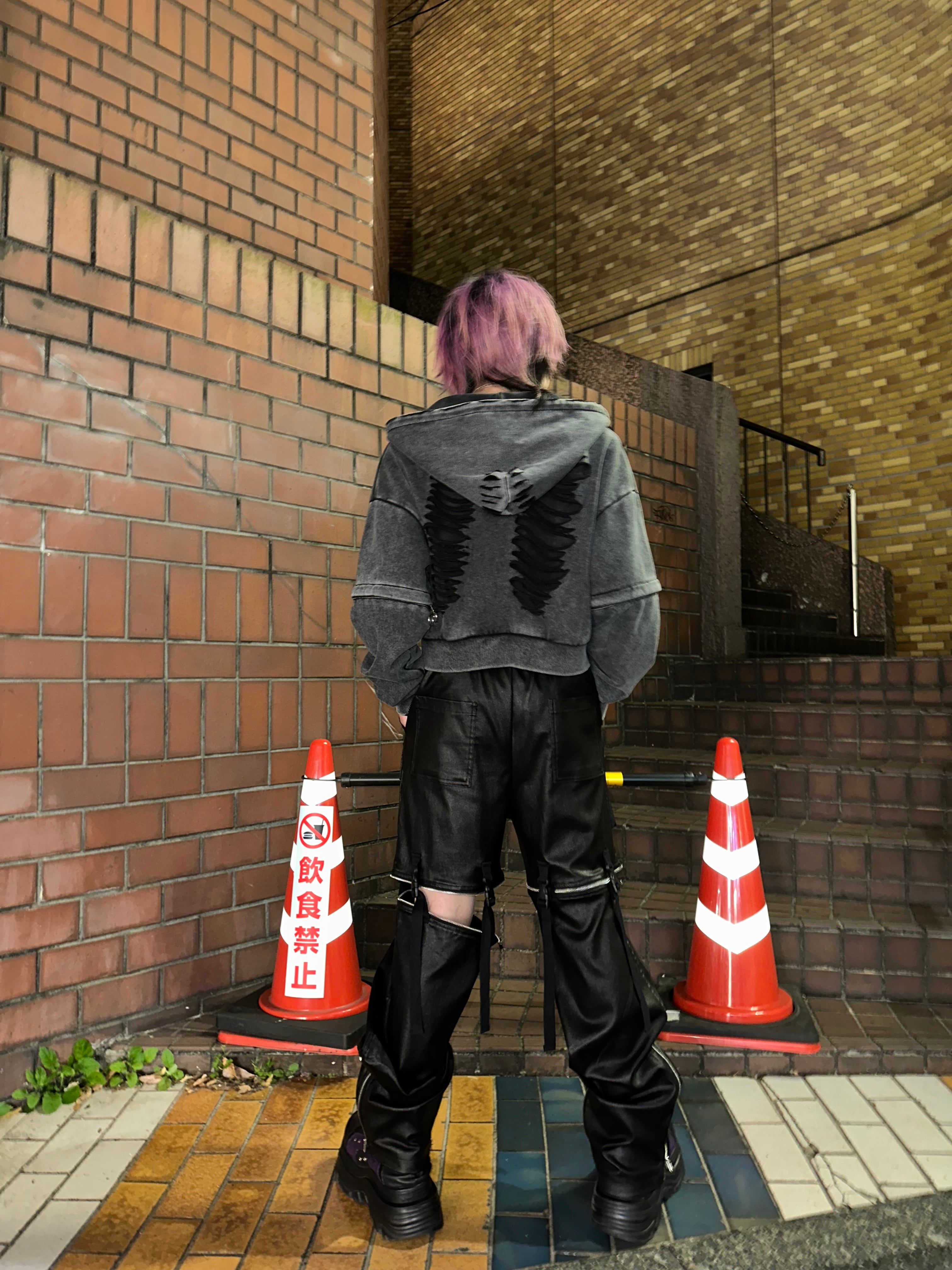 ダブルジップダメージパーカー(ショート)サブカル 地雷 グランジ