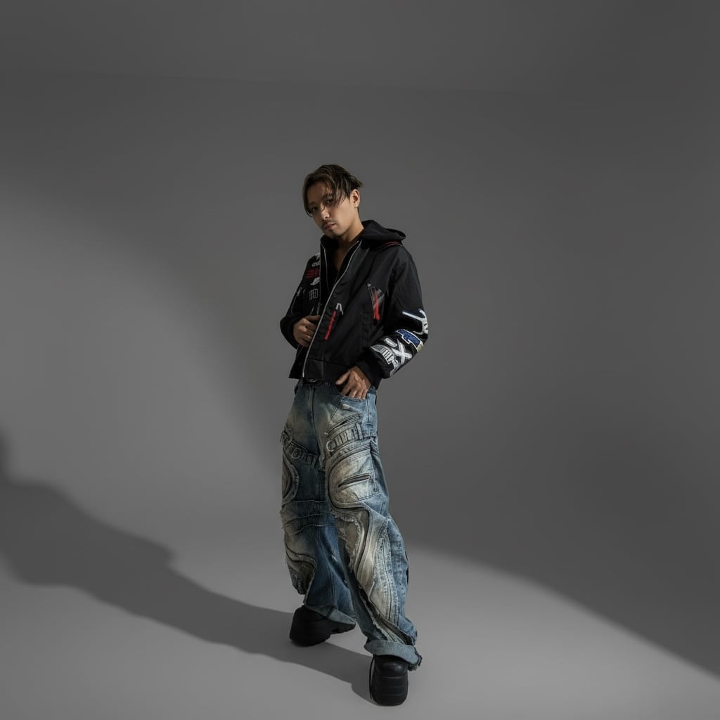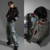 力強いグラフィックデザインとストリート感が融合した、存在感抜群のバイカージャケット。