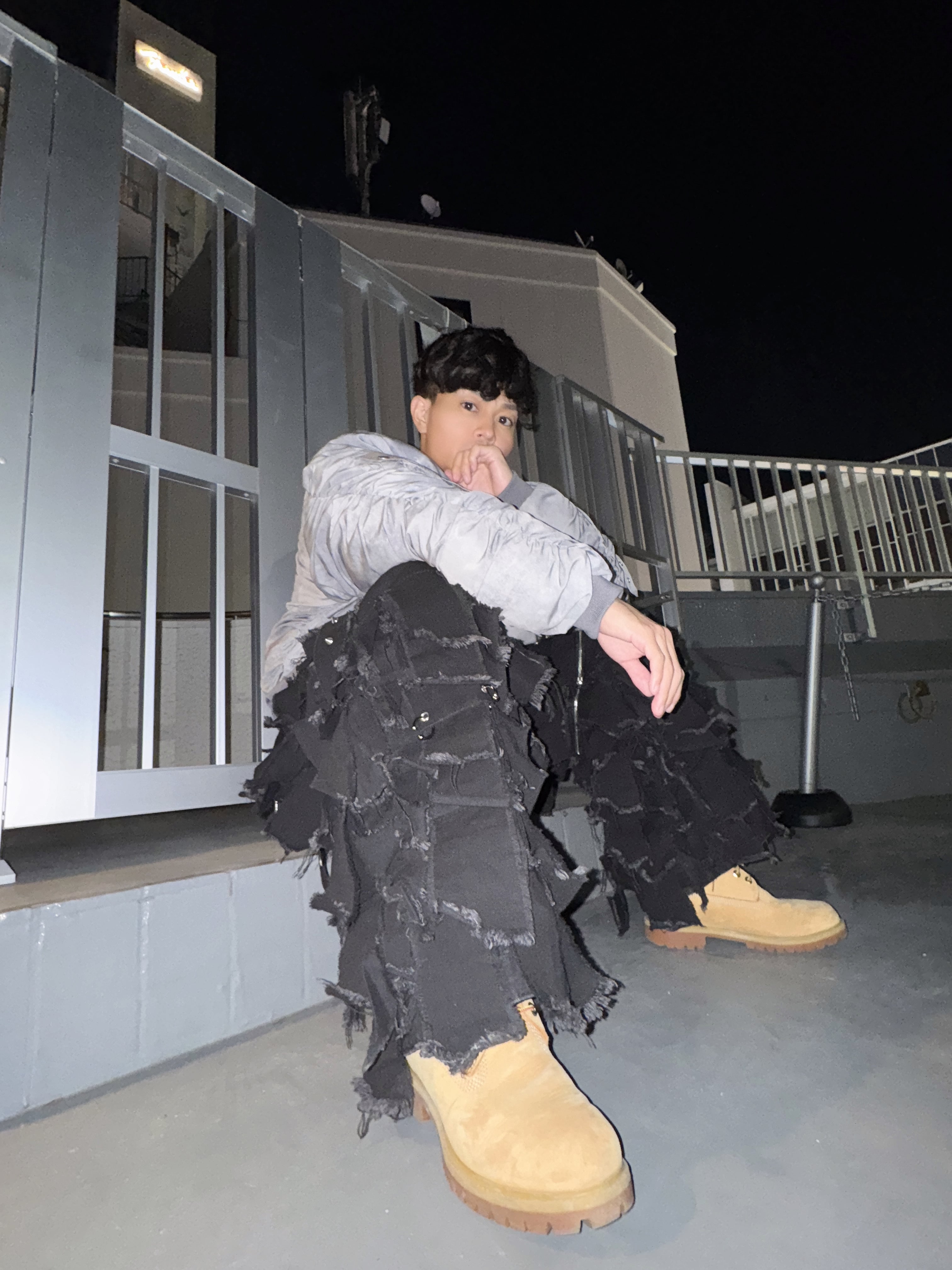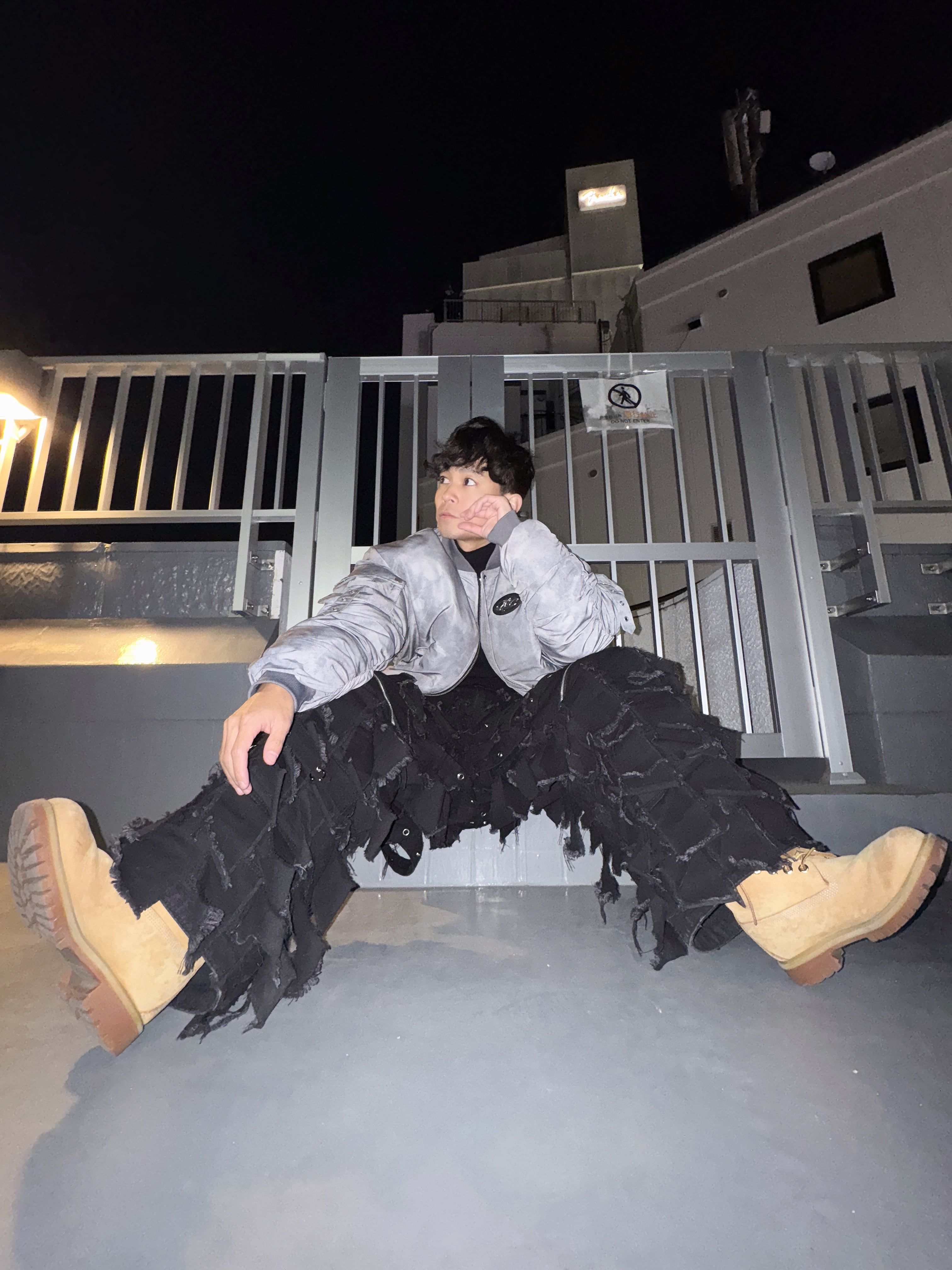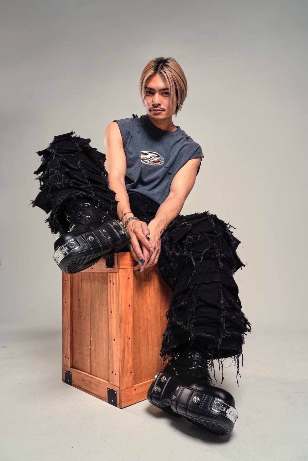 圧倒的な存在感を放つ、フリンジとカットパーツを無数に重ねたレイヤードデザインパンツ。