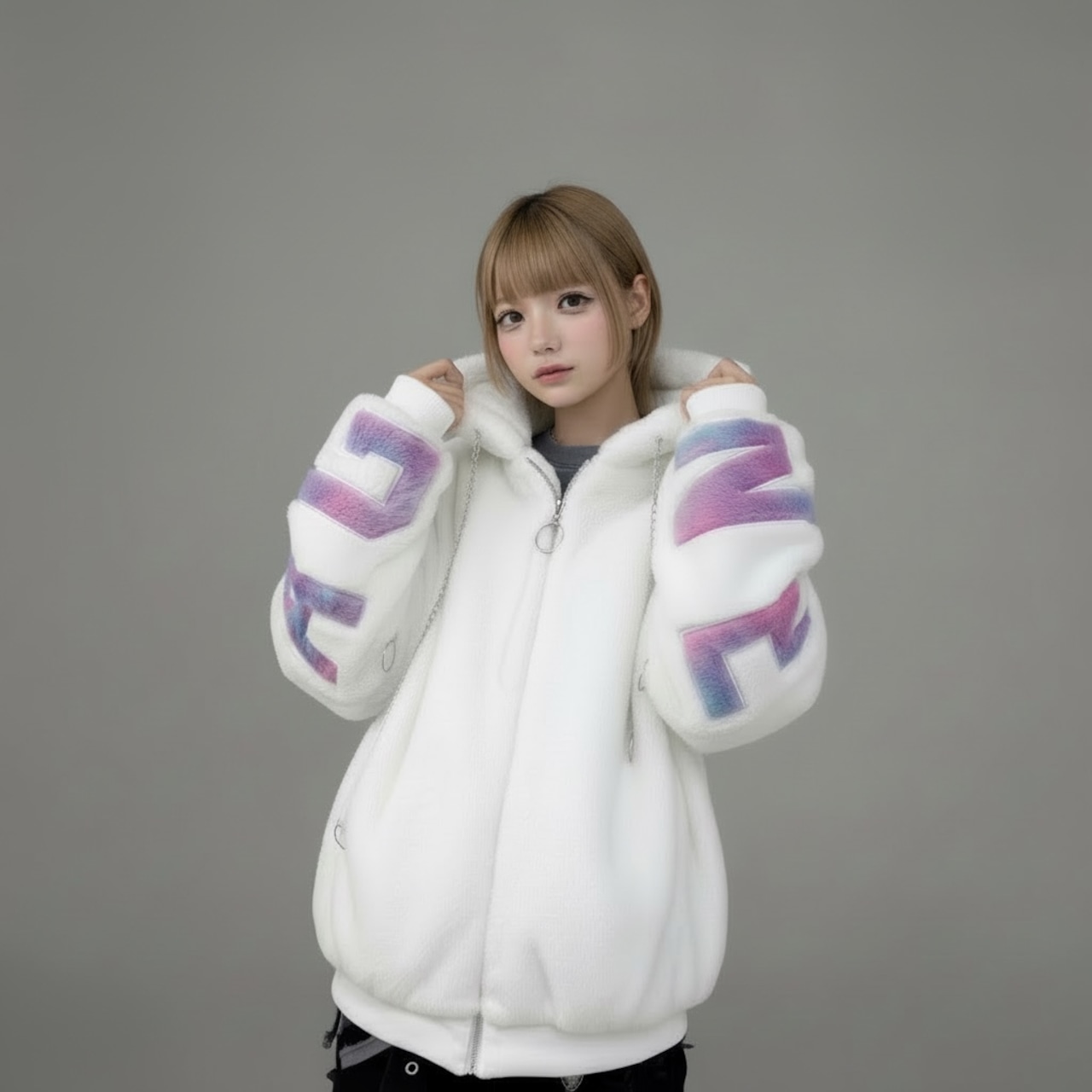 THICC(psynyxx) NEW JACK SWAGファーブルゾン ハイクオリティ ファーブルゾン ストリート アウター メンズ レディース ファーコート パーカー
