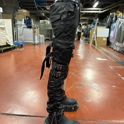 サイドにベルトが付いており、シルバー金具で高級感もあり、裾にはZIPがついており開くことで少し形が変わってフレアにもできます。