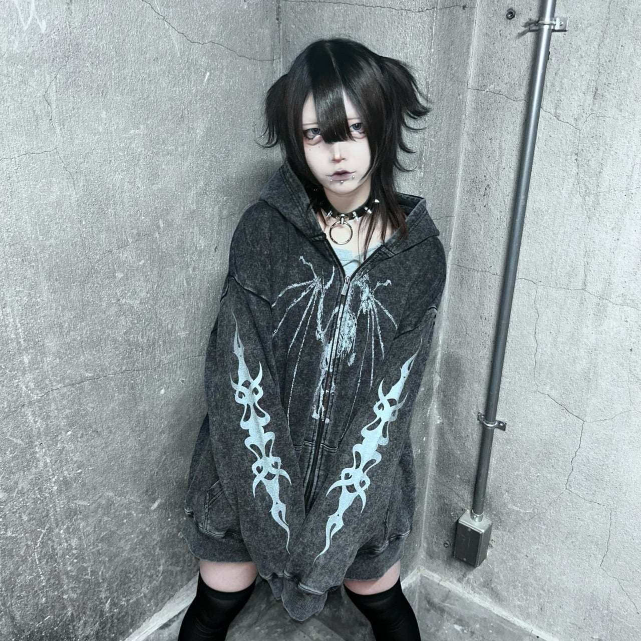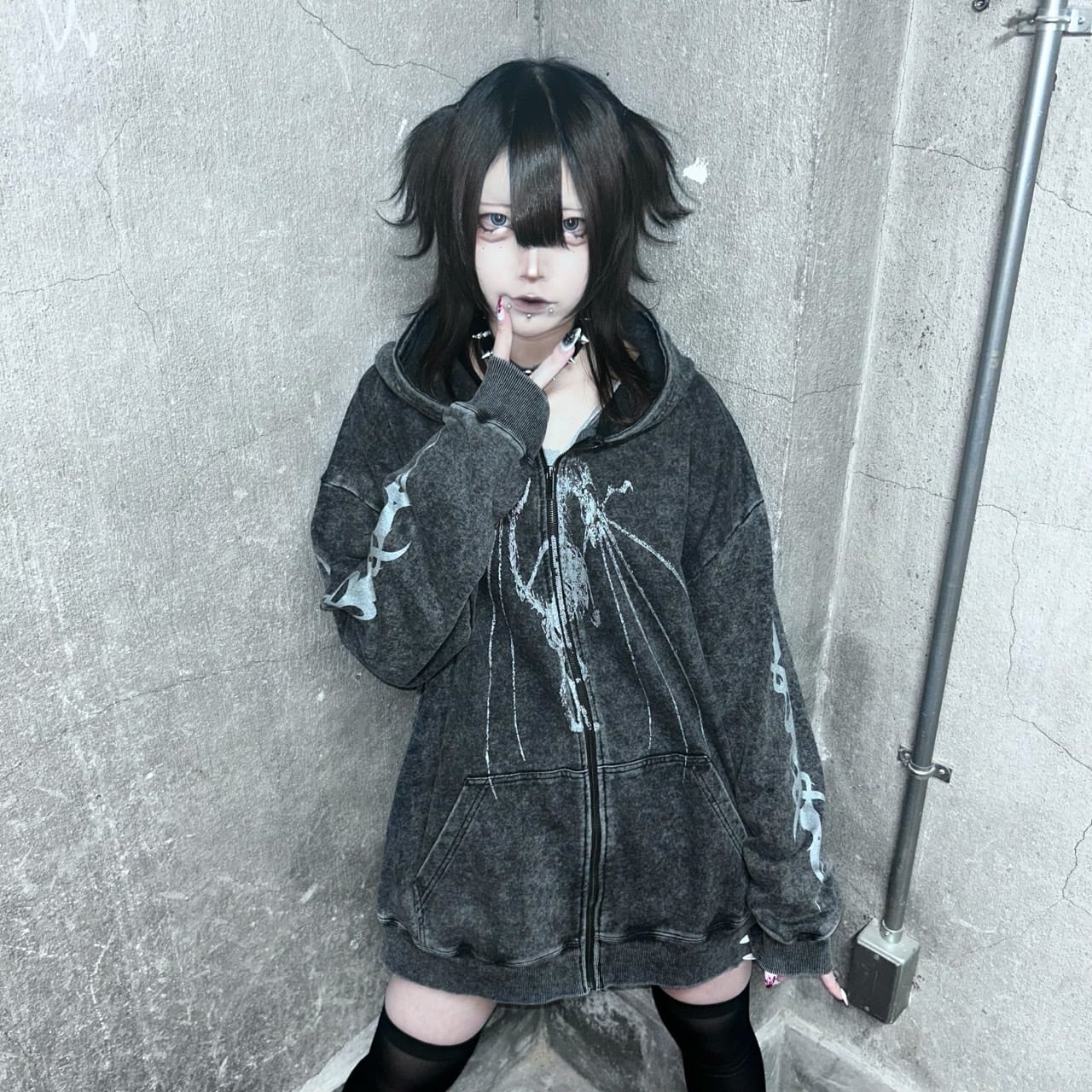 PSYNYXX ドラゴンモチーフピグメントパーカー グランジ サブカル 地雷系 ストリート系 韓国ファッション